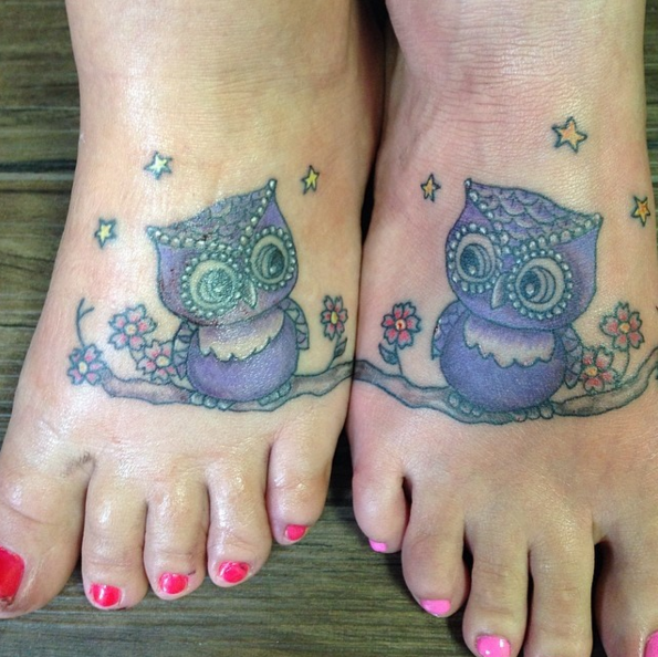 猫头鹰是另一种对许多人来说具有特殊意义的动物。这个可爱的猫头鹰纹身非常适合两个喜欢聪明的飞行员的兄弟姐妹。