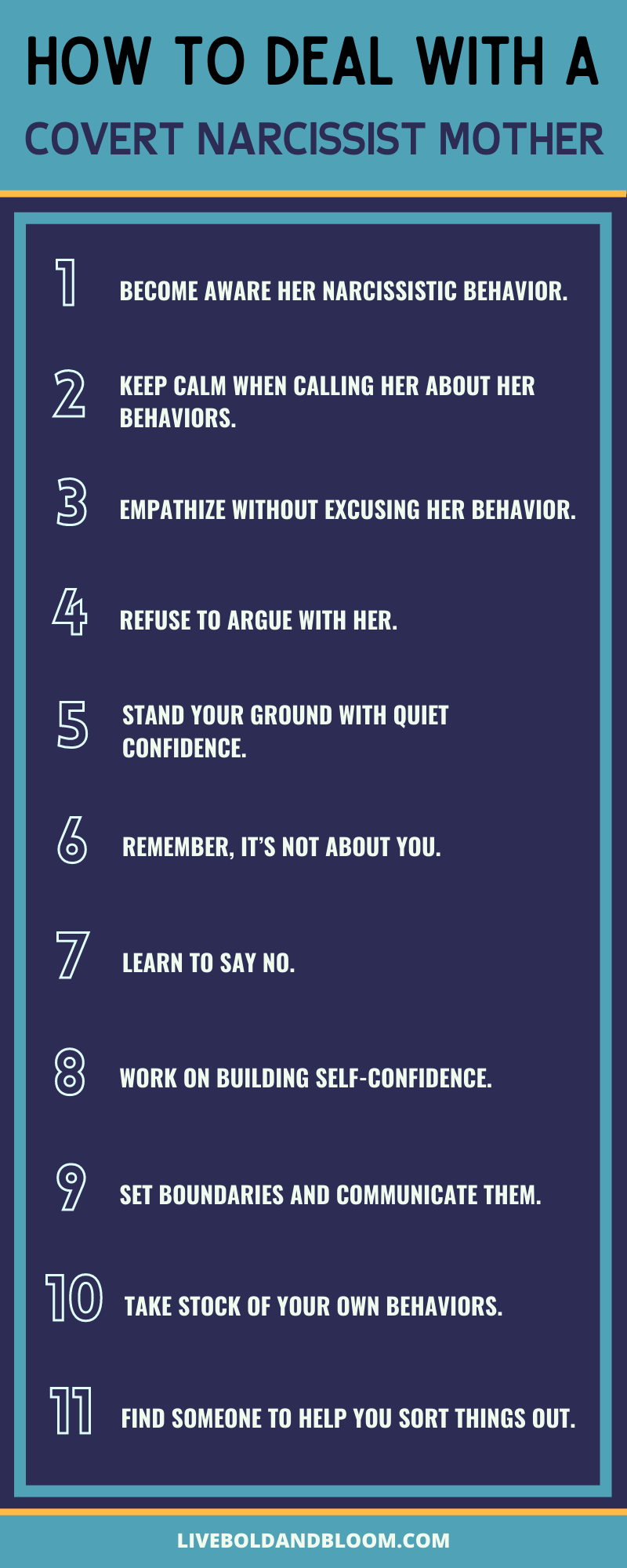 - 1. Become aware of the covert narcissism in your mother’s behavior.